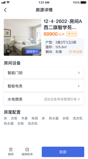 『门锁』、『电表』一应具全,方便中介和自己带看,降低换锁芯成本,随时管控自己的房源,有效实现催租催收、入户情况核实等场景管理